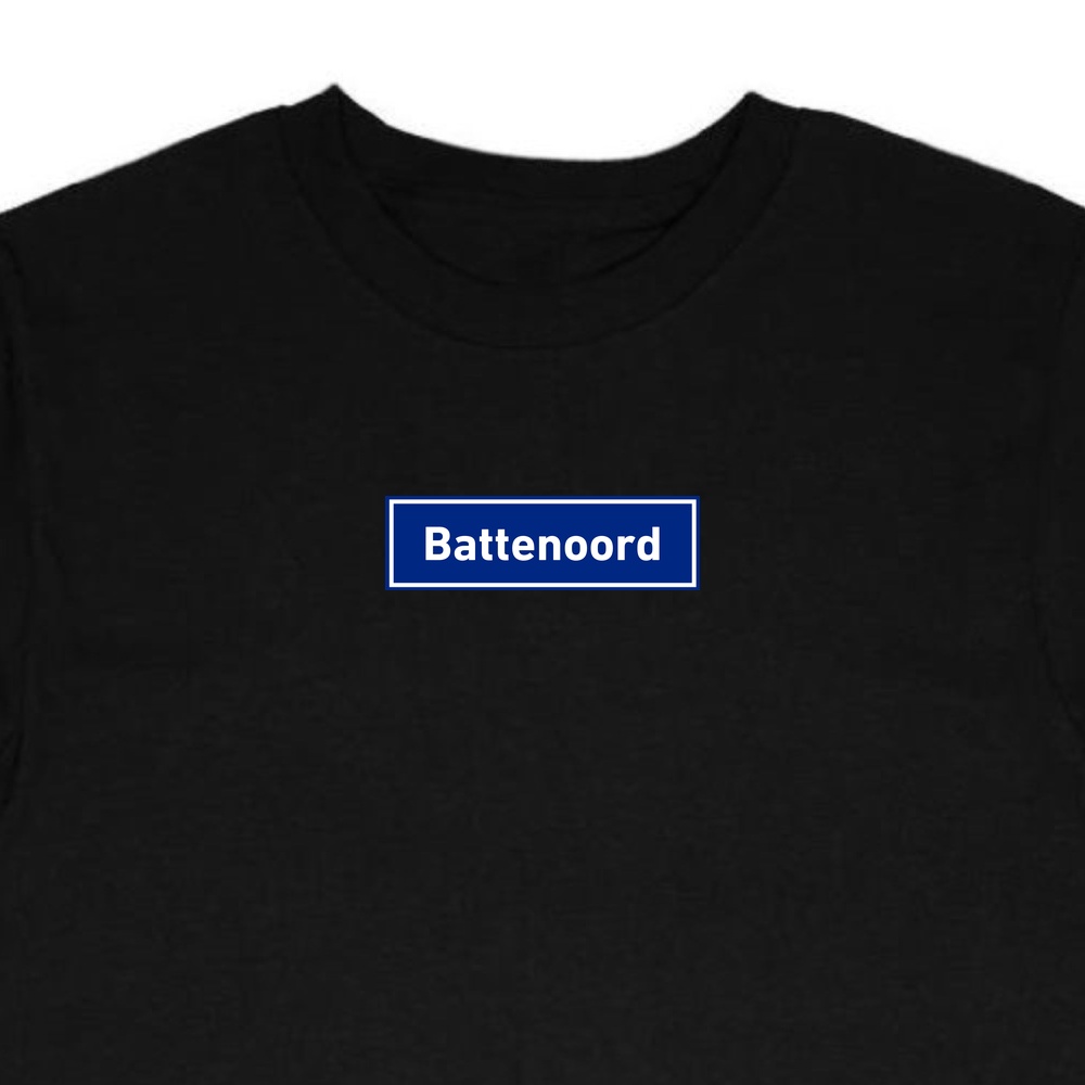 T-Shirt Battenoord – verkrijgbaar in wit of zwart, geprint of geborduurd.