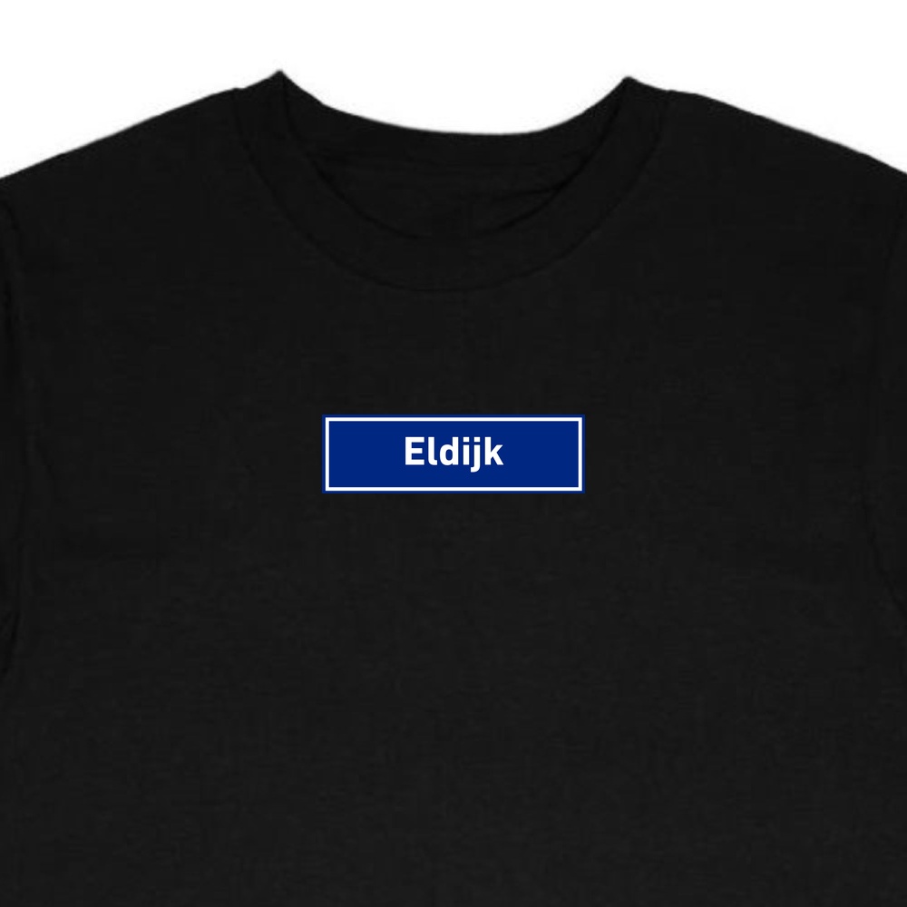 T-Shirt Eldijk – verkrijgbaar in wit of zwart, geprint of geborduurd.