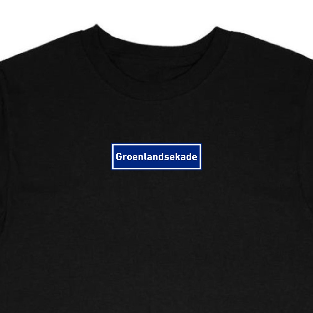 T-Shirt Groenlandsekade – verkrijgbaar in wit of zwart, geprint of geborduurd.