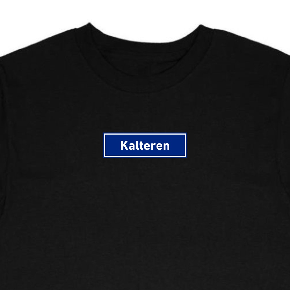 T-Shirt Kalteren – verkrijgbaar in wit of zwart, geprint of geborduurd.