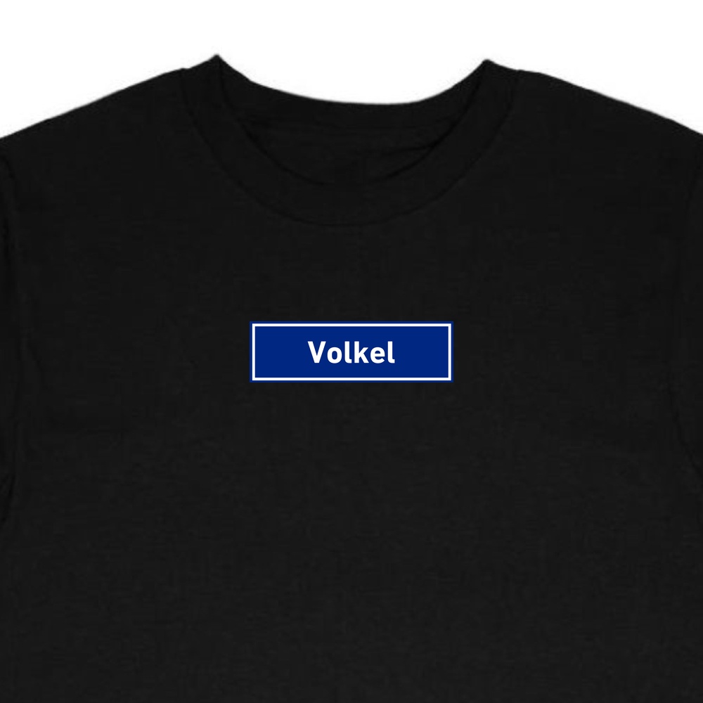 T-Shirt Volkel – verkrijgbaar in wit of zwart, geprint of geborduurd.