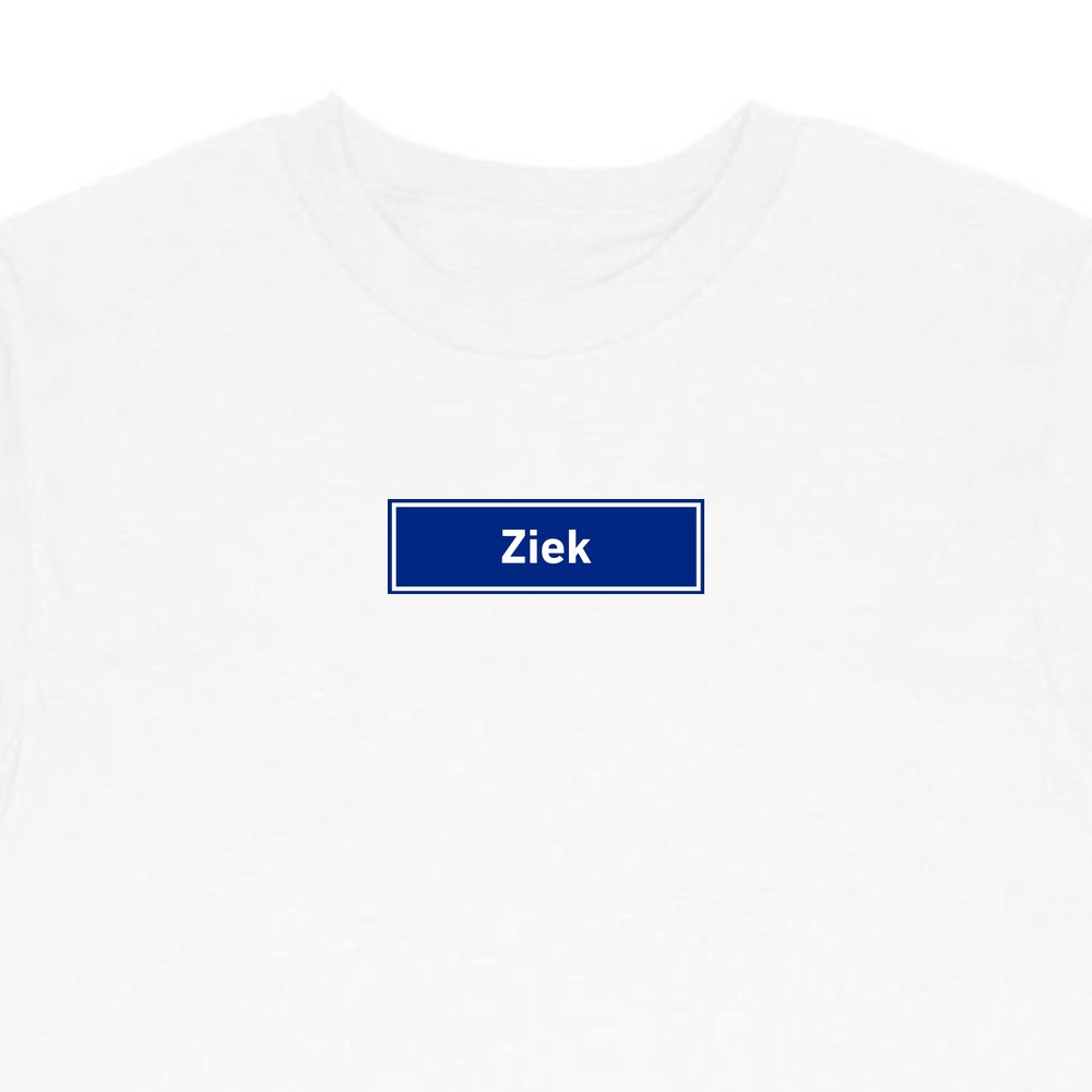 T-Shirt Ziek – verkrijgbaar in wit of zwart, geprint of geborduurd.